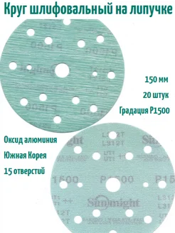 Шлифовальные круги на липучке 150 мм, Р1500, 9 отв, 20 шт