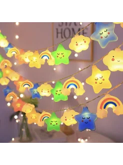 Фонарики-гирлянда милая Облака Звезды Радуга 3м