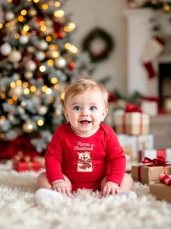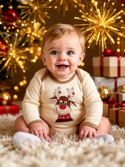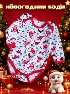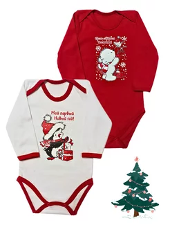 Боди с длинным рукавом для новорожденных новогоднее хлопок