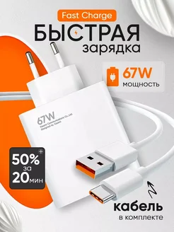 Быстрая зарядка для телефона 67w с кабелем USB - Type-c