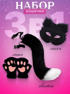 Маска лапки и хвост кошки набор для квадробики