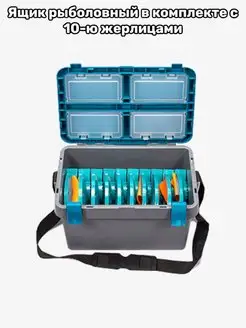 Ящик рыболовный в комплекте с 10-ю жерлицами