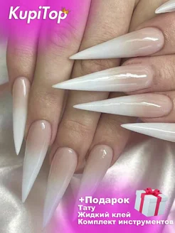 Накладные ногти стилет с клеем длинные молочные
