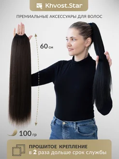 Хвост на резинке накладной шиньон темный шатен