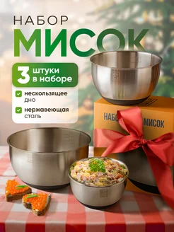 Набор 3 мисок из нержавеющей стали для кухни