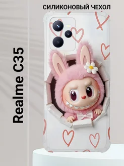 Чехол на Realme C35 прозрачный с принтом Labubu
