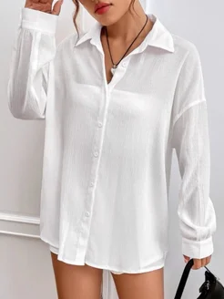 Рубашка оверсайз белая для офиса и пляжа
