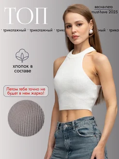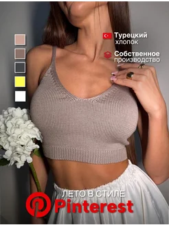 Топ летний вязаный с открытыми плечами кроп топ