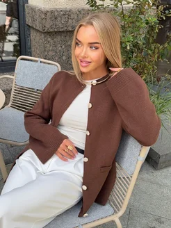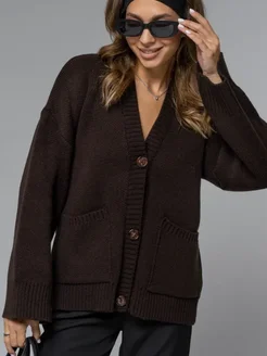 Кардиган оверсайз коричневый вязаный на пуговицах