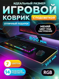 Коврик для мышки игровой, большой с подсветкой RGB 800*300