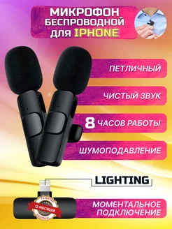 Микрофон петличный беспроводной для телефона iphone, type-c