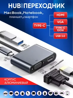 Переходник, hub, Type-C, HDMI, VGA, USB, 4в1