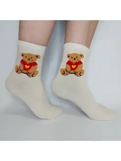 Носки "Мишка в футболке" бежевые