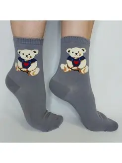 Носки "Мишка в футболке" серые