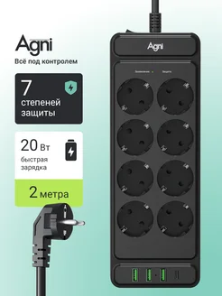 Удлинитель Сетевой фильтр с USB 2 метра 8 розеток