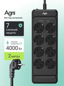 Удлинитель Сетевой фильтр 2 метра 8 розеток