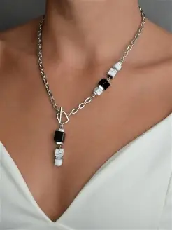 Колье цепь на шею с подвеской из натурального камня