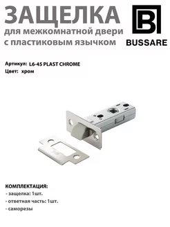 Защелка межкомнатная с пластиковым язычком цвет хром