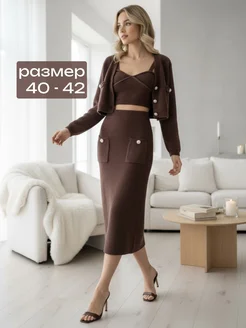Костюм теплый трикотажный с юбкой и кардиганом тройка