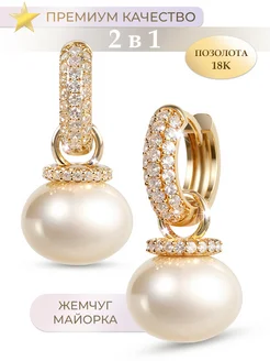 Серьги 2 в 1 с жемчугом бижутерия