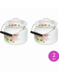Бидон эмалированный с крышкой и ручкой, белый 2л, 2 шт