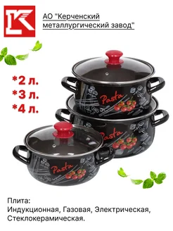 Набор кастрюль эмалированная сталь 2л. 3л 4л