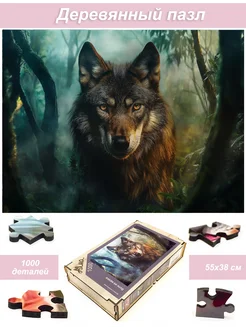 Пазл Алма деревянный 1000 деталей. Волк из мрака