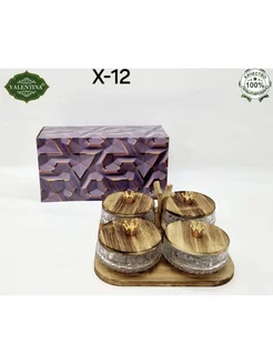 Менажница стеклянная с крышкой 4 шт для орехов и сухофруктов