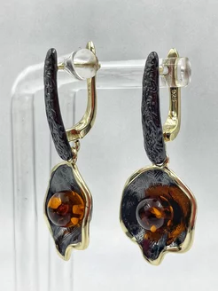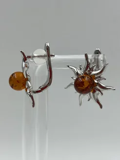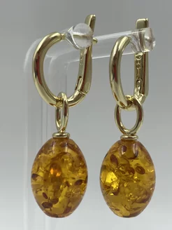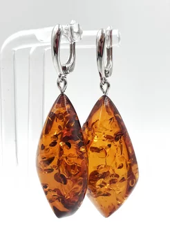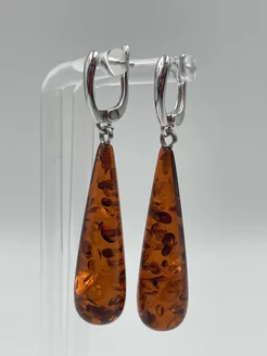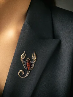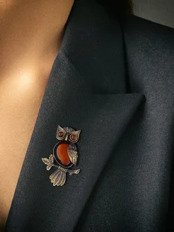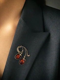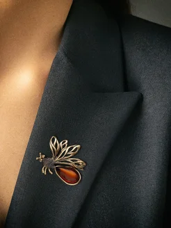 Брошь-булавка с натуральным камнем - янтарь прессованный