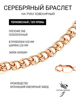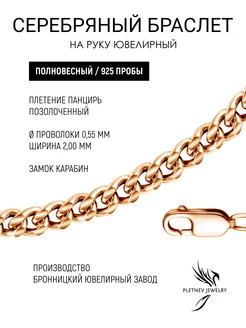 Серебряный браслет на руку 925 позолоченный