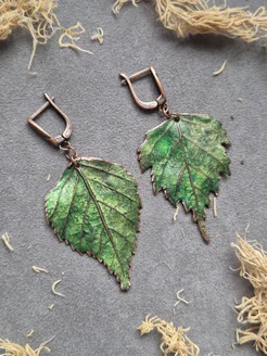 Серьги медные листья берёзы ручной работы