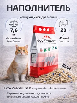Eco Premium BLUE комкующийся древесный наполнитель 7.6кг 20л
