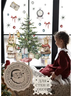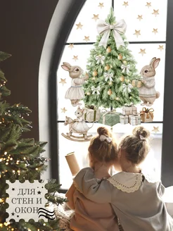 Новогодние наклейки на окна и стены Заяц Ёлка 2026