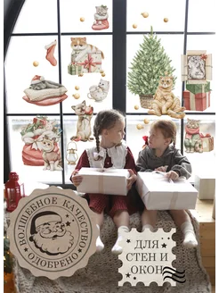 Наклейки новогодние на окна и стены Котики 2026