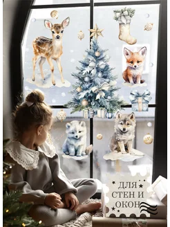 Наклейки новогодние детские на окна и стены Ёлка 2026