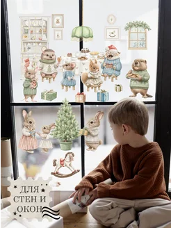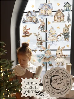 Наклейки новогодние детские на окна и стены Зайцы 2026