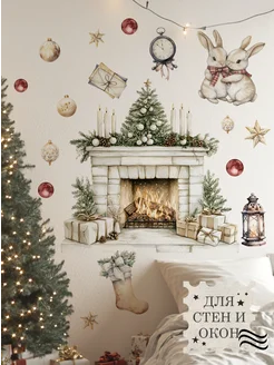 Новогодние наклейки на стены и окна Камин 2026