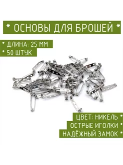 Основы для брошей значков прямоугольные 25 х 5 мм. 50 шт