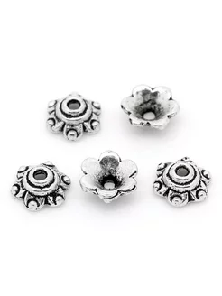 Шапочки для бусин размером 7 мм, античное серебро, 10 штук