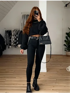 Зауженные джинсы скинни с высокой посадкой стрейч