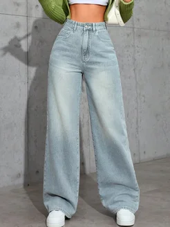 Джинсы широкие трубы клеш с высокой посадкой оверсайз