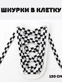 Плоские шнурки 120 см 8 мм Белые в черную клетку