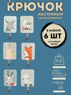 Крючки декоративные самоклеящиеся Милые зверюшки МИКС
