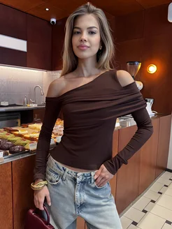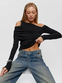 Лонгслив на одно плечо с вырезом и драпировкой асимметричный