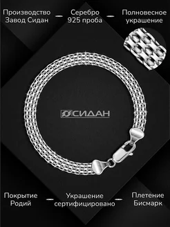 Браслет серебро с эко покрытием 925, Бисмарк четырехрядный