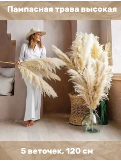 Пампасная трава высокая, кортадерия сухоцвет 5 шт