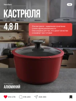 Кастрюля с крышкой De Chef Bordo 4,8 л, 24 см (индукция)
