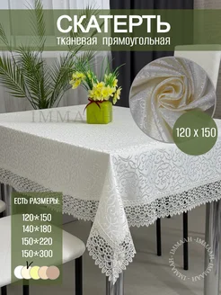 Скатерть тканевая на стол праздничная с кружевами 120*150