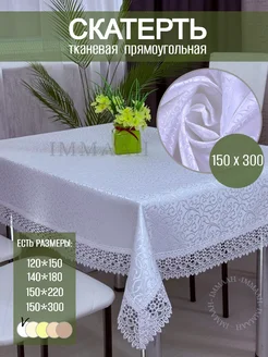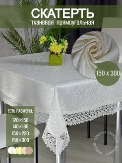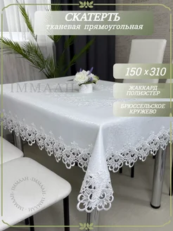 Скатерть на стол тканевая с кружевами 150х300 праздничная