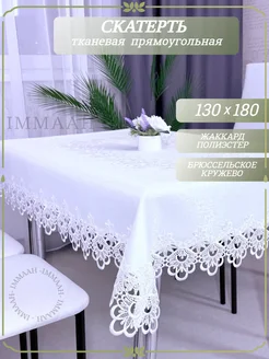 Скатерть белая праздничная на стол с кружевами 130Х180 см